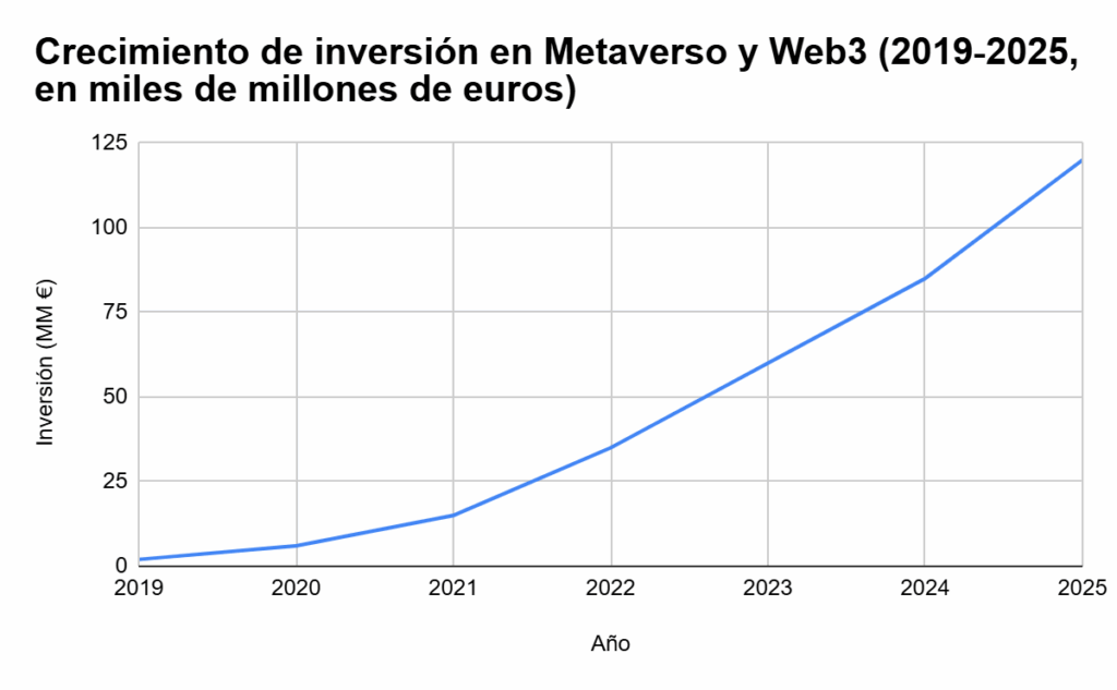 - Decentraland: un metaverso basado en blockchain donde los usuarios compran y venden terrenos virtuales mediante tokens MANA. En 2025, la capitalización de sus terrenos digitales alcanzó aproximadamente 1.500 millones de euros.